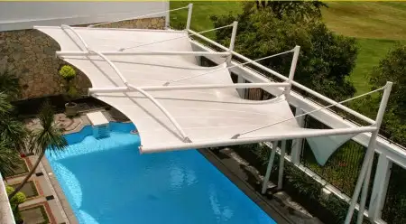 solusi tensile structure modern untuk carport, teras kafe, selasar sekolah, halaman masjid, kolam renang, hingga area publik.